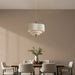 Denna moderna kupollampa kombinerar skulptural estetik med subtil funktion. De tre böljande skärmarna i varm, naturvit textil skapar en harmonisk och mjukt ljusspridande form. Den nedtonade färgpaletten och den organiska siluetten gör lampan idealisk för vardagsrum, sovrum eller stilrena entréer. Trots sin lugna närvaro drar den blickarna till sig – som ett flytande konstverk i taket. Lampan passar perfekt i skandinavisk, japandi eller modern inredning där form möter funktion.