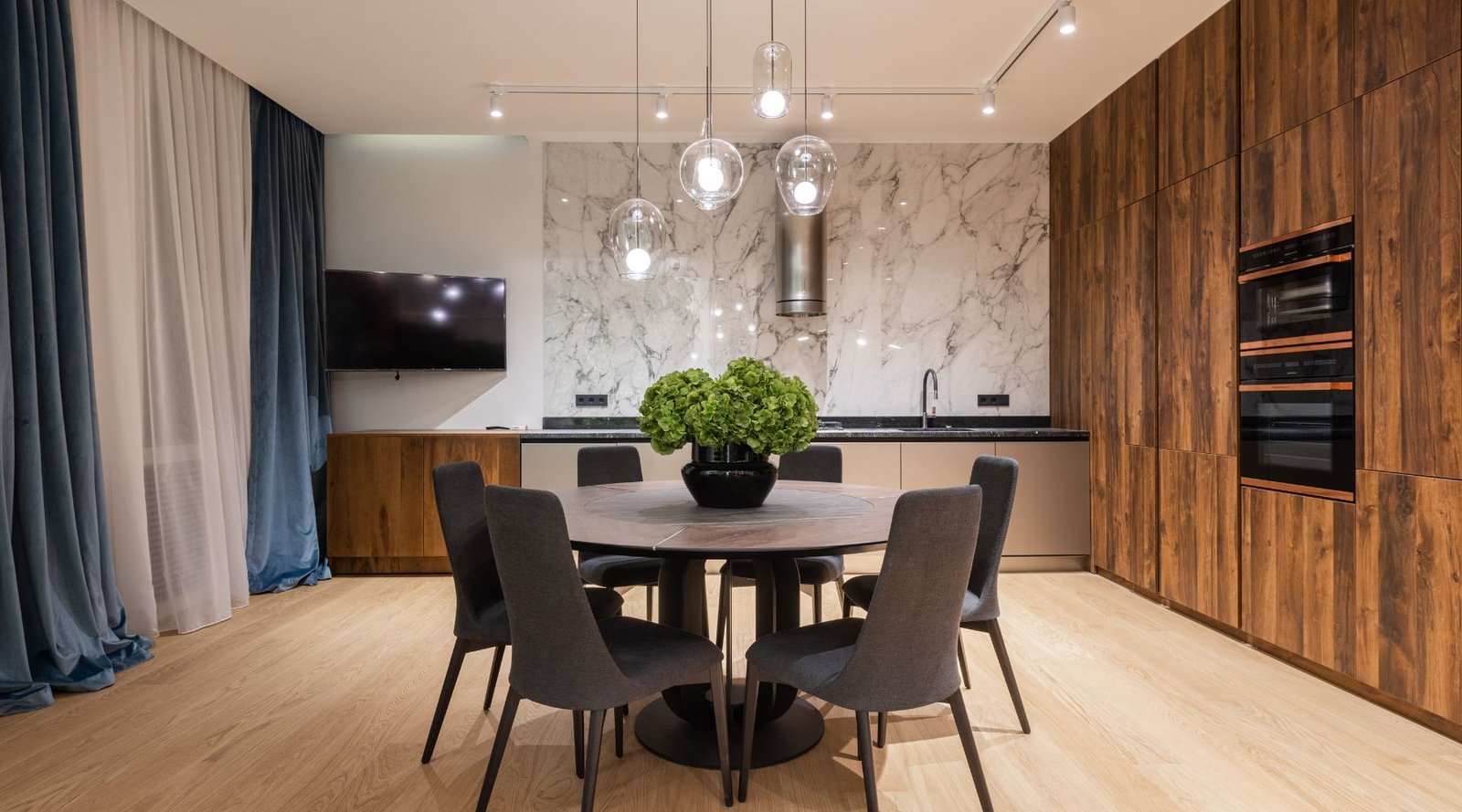 För längre bord kan det vara snyggt och praktiskt att ha två eller tre mindre taklampor istället för en stor. Det skapar en jämn ljusfördelning och ger en modern känsla.
