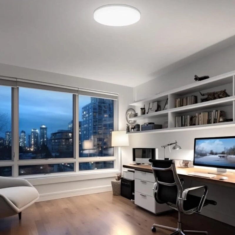 Denna moderna taklampa kombinerar stilren design med kraftfull LED-belysning. Den tunna, runda formen gör den perfekt för sovrummet, vardagsrummet eller hallen. Med energieffektiv LED-teknologi ger lampan ett jämnt och behagligt ljus, idealiskt för en avslappnande atmosfär.