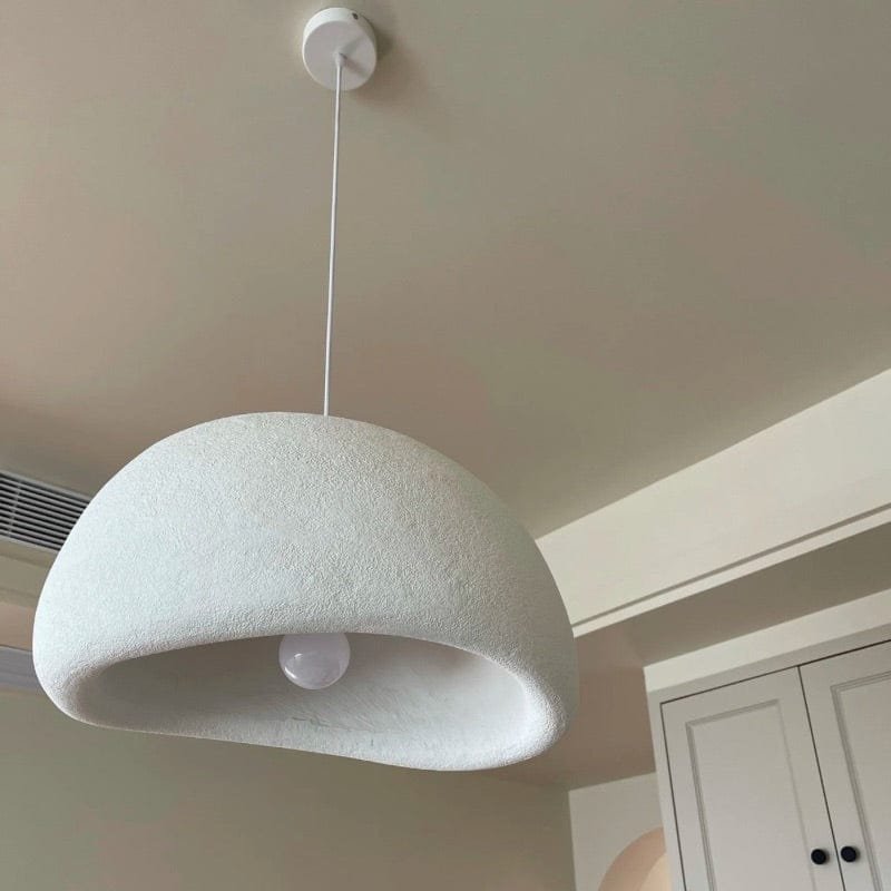 Den handgjorda, oregelbundna formen ger lampan en naturlig och modern touch, vilket gör den till en vacker inredningsdetalj i hemmet.