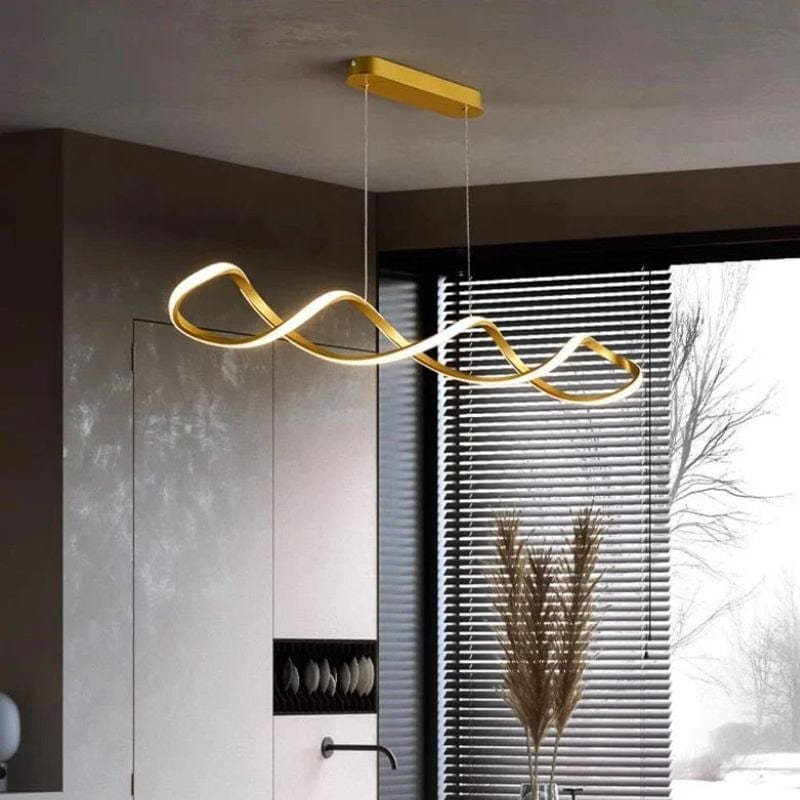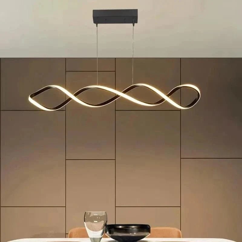 Denna snygga taklampa kombinerar modern elegans med innovativ LED-teknik. Dess unika vågformade design ger rummet en stilfull och exklusiv touch, samtidigt som den energieffektiva LED-belysningen skapar ett behagligt ljus över matbordet. Den svarta metallbasen och den tunna, svävande ljusprofilen gör att lampan smälter in i både minimalistiska och lyxiga interiörer. Perfekt för kök, matsalar och vardagsrum där du vill ha en sofistikerad men funktionell belysning.