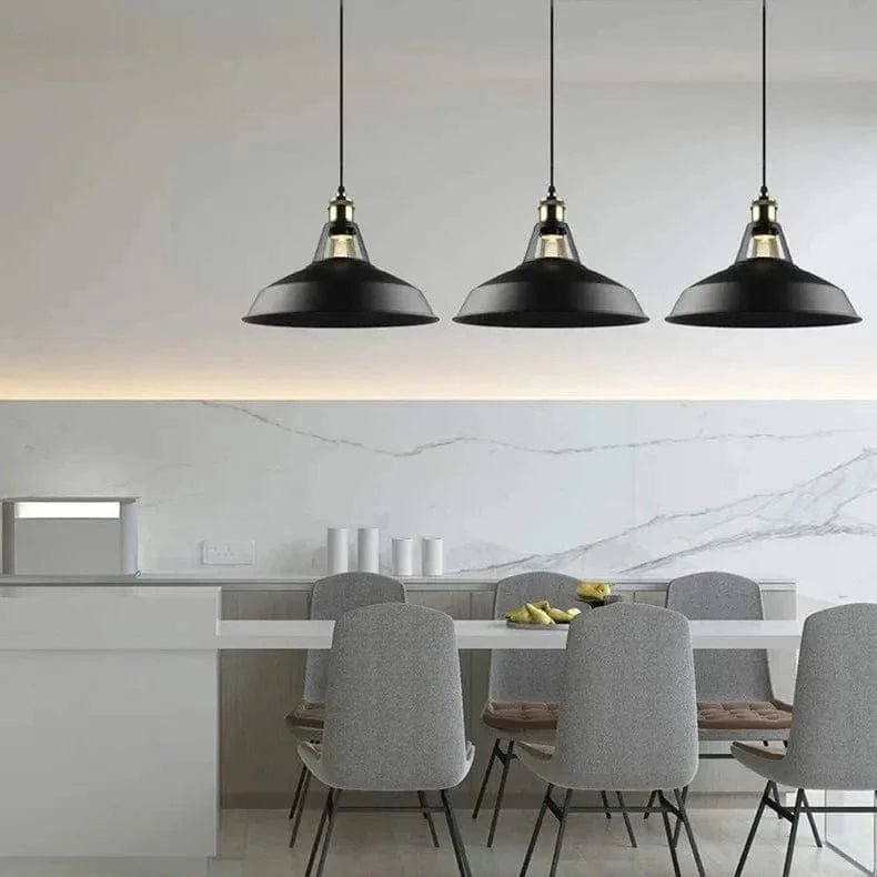 Den breda skärmen ger riktad och effektiv belysning, vilket gör lampan idealisk för matbord, köksöar och arbetsytor.