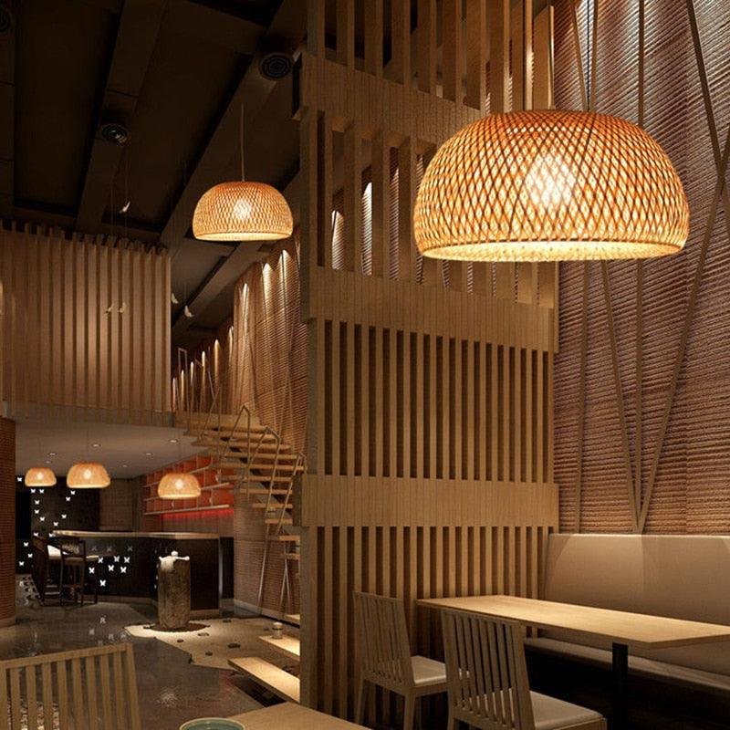 Denna stilrena taklampa är ett utmärkt val för både privata och kommersiella miljöer. Oavsett om den placeras i köket, vardagsrummet eller i en restaurang skapar den en elegant och naturlig atmosfär. Enkel att installera och kompatibel med olika ljuskällor.