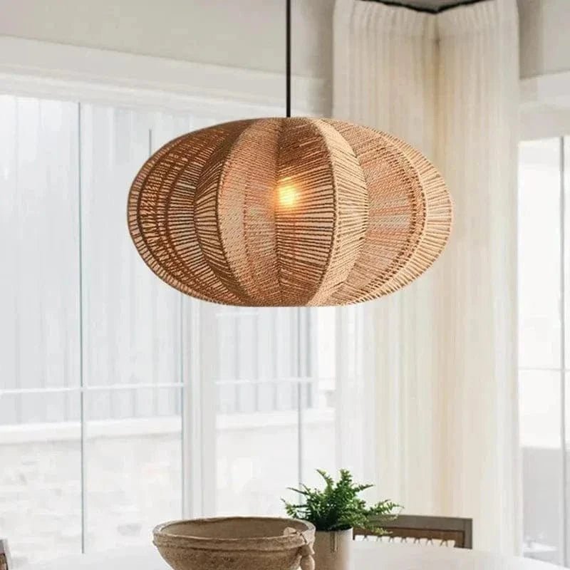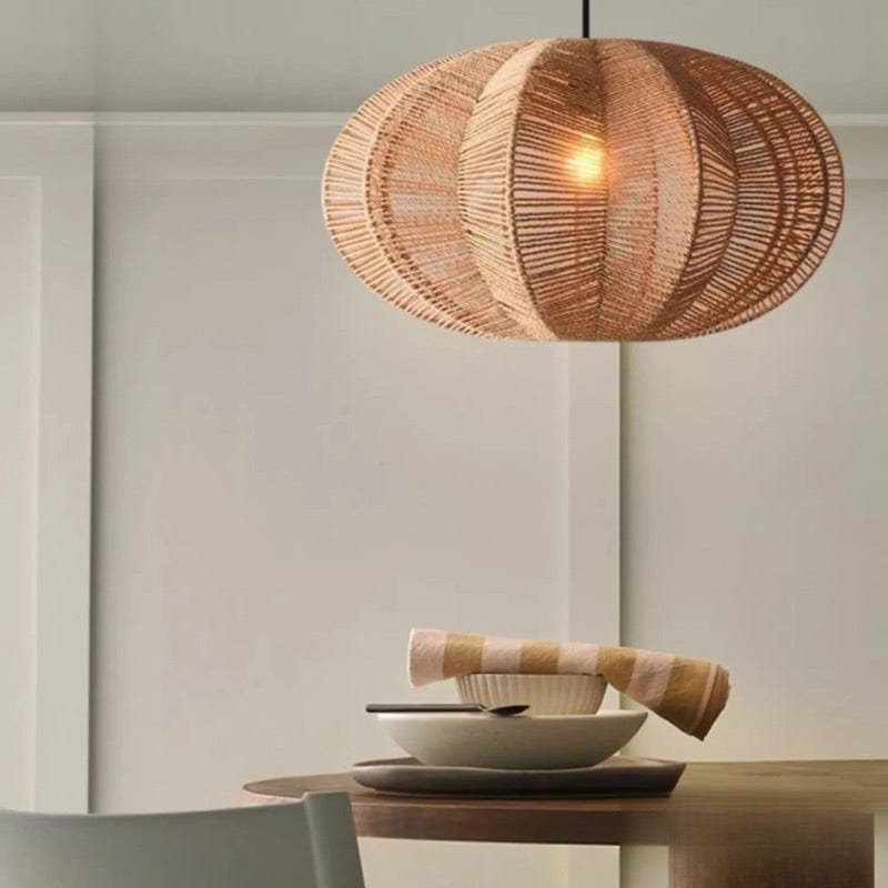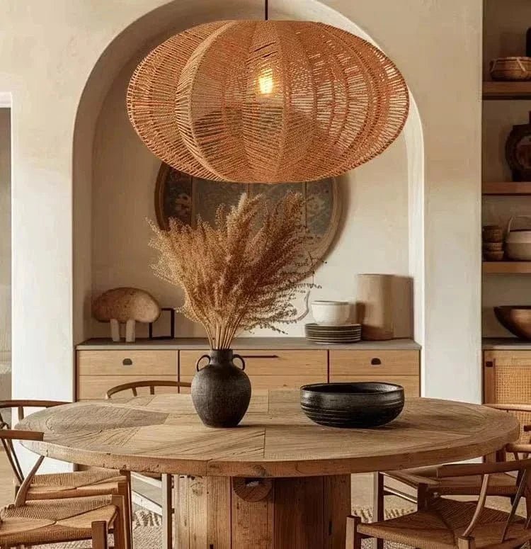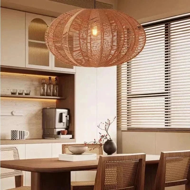 Den handvävda rottingen ger lampan ett rustikt och jordnära utseende som passar både modern och lantlig inredning.