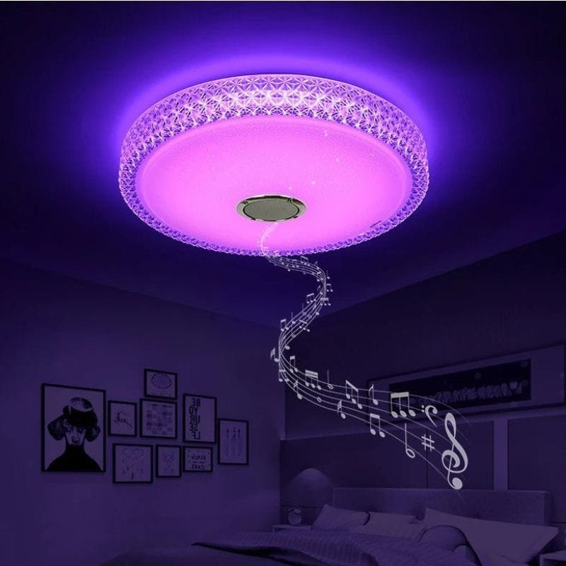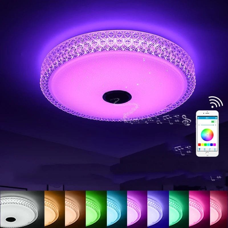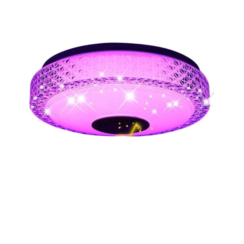Denna lyxiga taklampa kombinerar stil och funktion med sin kristallinspirerade design, RGB-belysning och inbyggd Bluetooth-högtalare. Skapa den perfekta atmosfären i ditt sovrum med justerbara färger och spela din favoritmusik direkt från mobilen. Perfekt för dig som vill ha både vacker belysning och smart teknologi i ett!