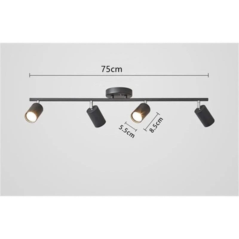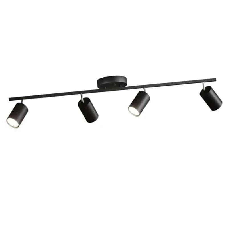 Denna taklampa med spotlights på skena är den perfekta lösningen för dig som vill ha justerbar och stilren belysning i hemmet. Med sin minimalistiska design i svart metall ger den ett modernt uttryck och passar perfekt i vardagsrum, kök eller hall.