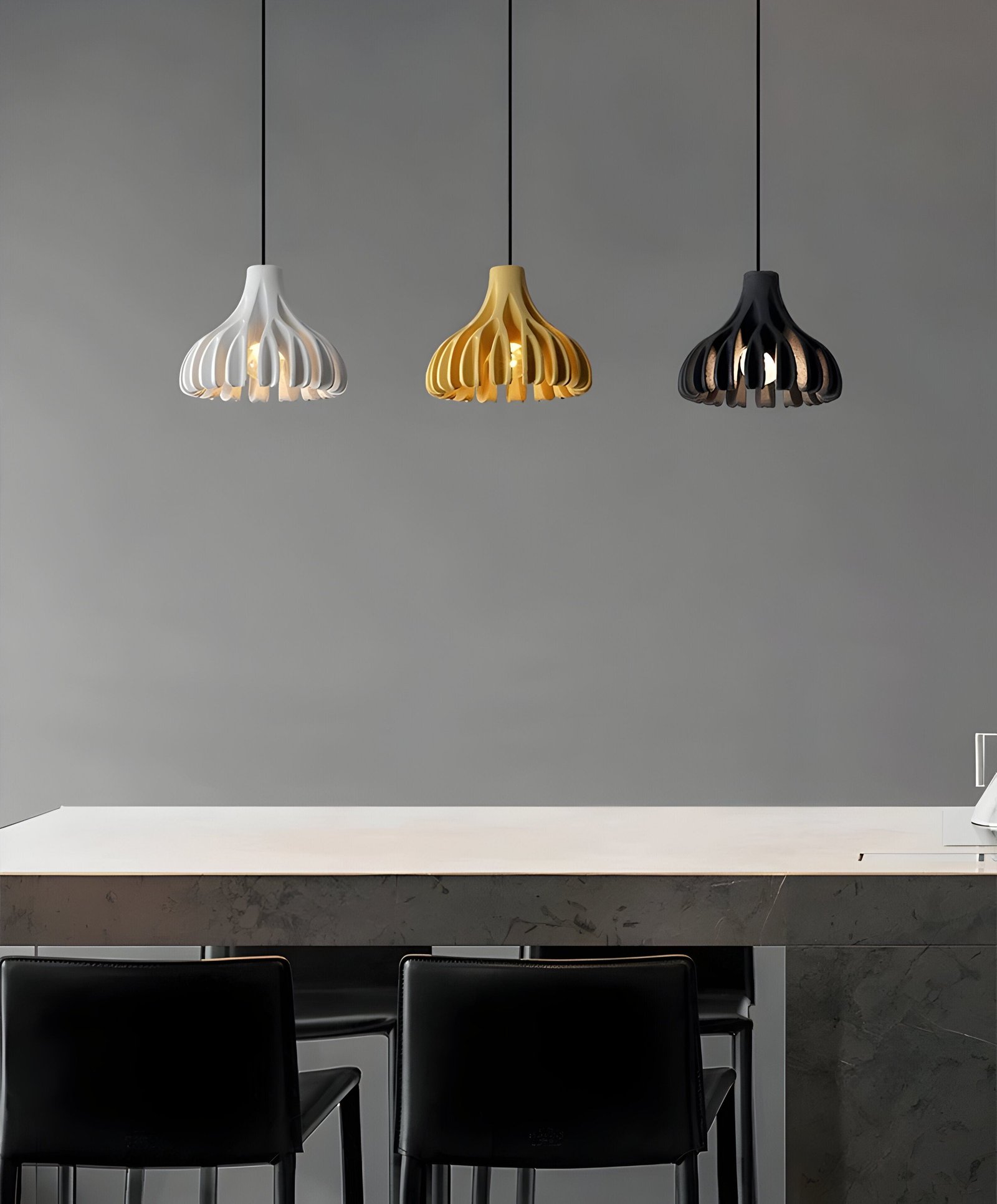Valet att använda harts (resin) i denna hängande lampa ger en yta som är både silkeslen och extremt hållbar. Hartsmaterialet tillåter mer komplexa och mjuka former än traditionella material, vilket ger macaron-designen dess autentiska och mjuka uttryck. Det är ett material som inte bara ser lyxigt ut utan också är lätt att rengöra och motståndskraftigt mot repor. Den matta finishen absorberar och reflekterar ljus på ett subtilt sätt, vilket gör att lampan ser lika bra ut släckt som tänd.