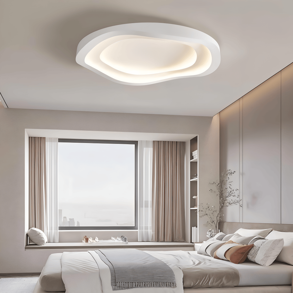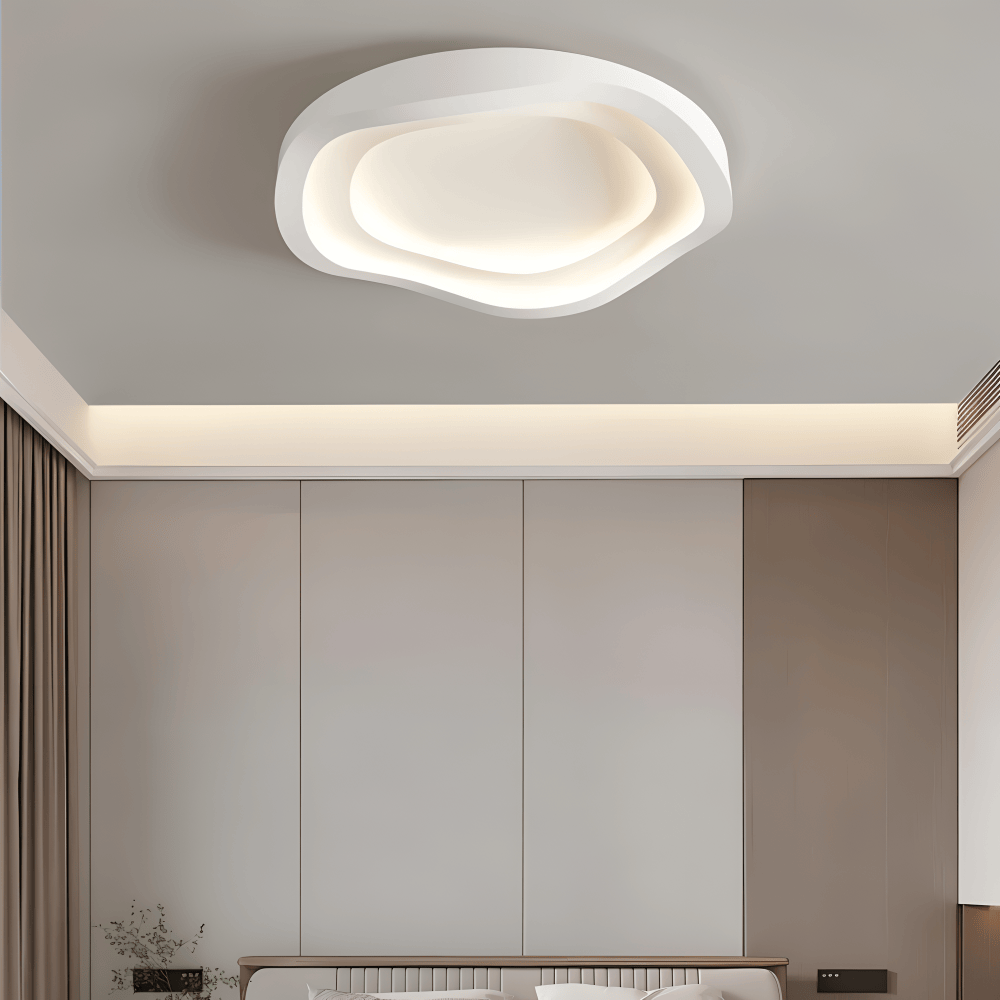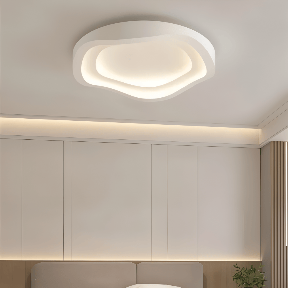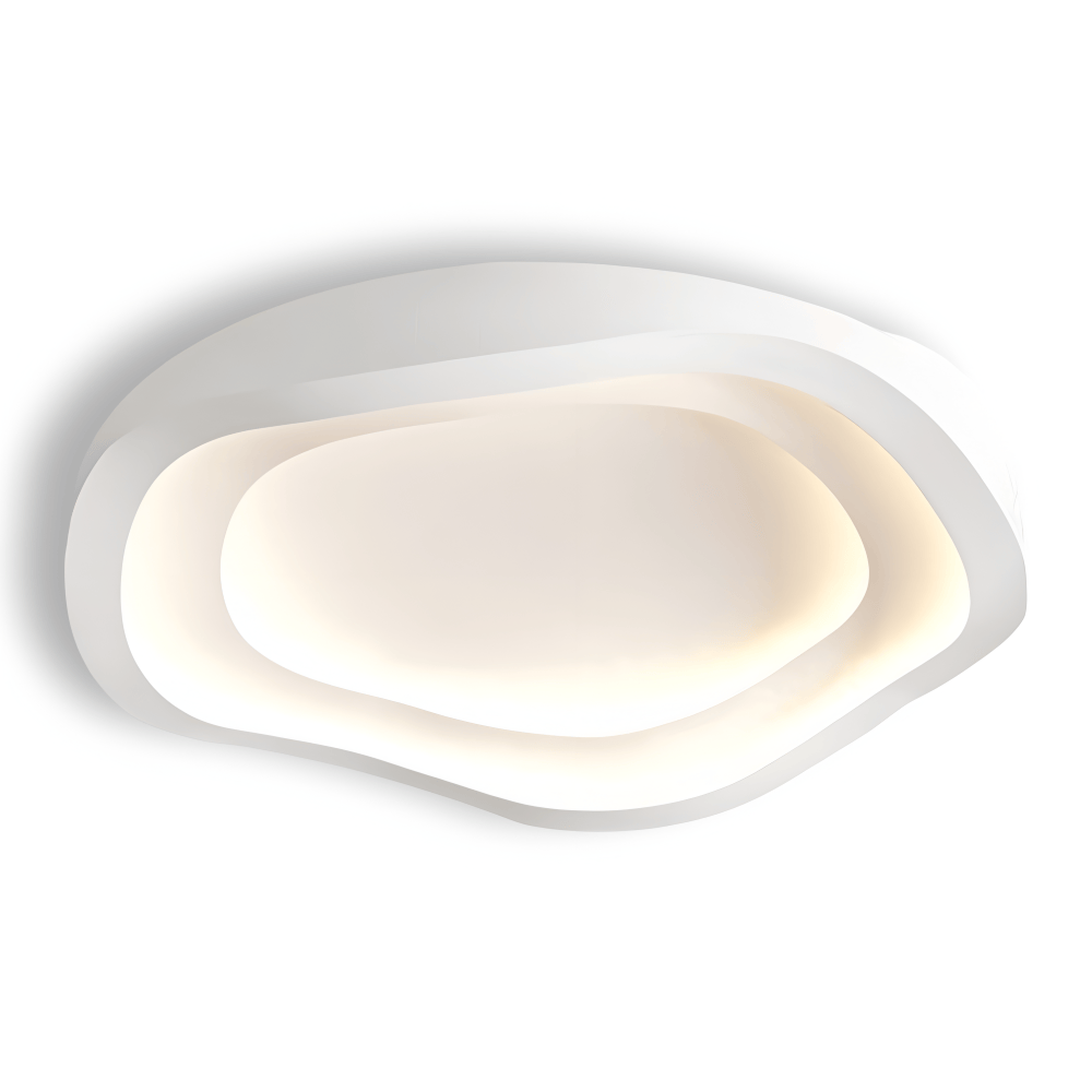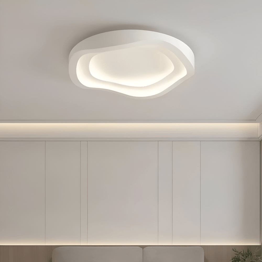 Det som gör denna taklampa unik är dess förmåga att fungera som ett konstverk i taket. Istället för traditionella geometriska former erbjuder den kurviga designen en organisk känsla som för tankarna till modern arkitektur och naturformer. Den vita färgen förstärker skuggspelen som uppstår längs armaturens yta, vilket ger ett djup och en dynamik som ständigt förändras beroende på ljusförhållandena i rummet. Det är den perfekta lösningen för att mjuka upp en minimalistisk inredning och tillföra en touch av sofistikerad feminin estetik.