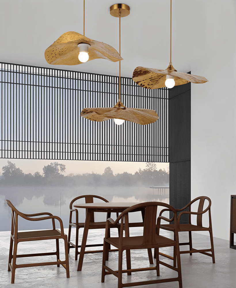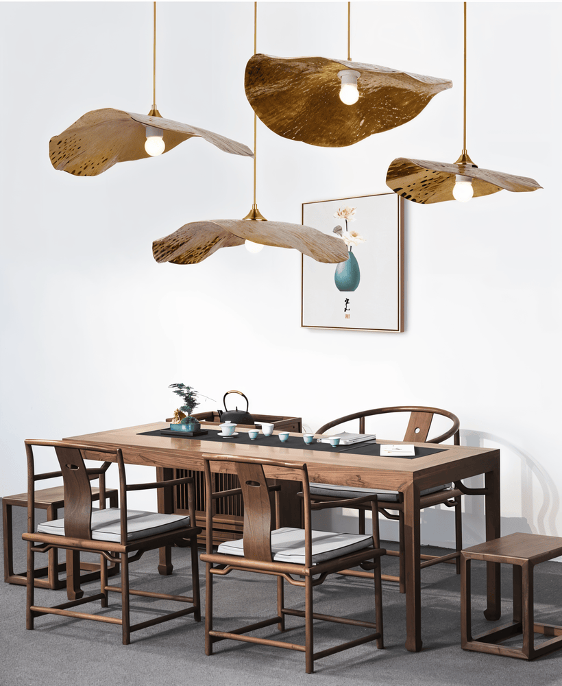 Det som gör lotuslampan unik är hur ljuset interagerar med de böjda guldbladen. När lampan tänds studsar ljuset mellan de olika nivåerna av metall, vilket eliminerar bländning och istället ger ett mjukt, indirekt ljus som badar rummet i värme. Skuggorna som kastas på väggarna påminner om naturens egna mönster, vilket skapar ett harmoniskt och levande djup i inredningen. Med sin justerbara upphängning kan du anpassa lampans höjd för att maximera dess visuella effekt och skapa den ultimata lyxkänslan i ditt hem.
