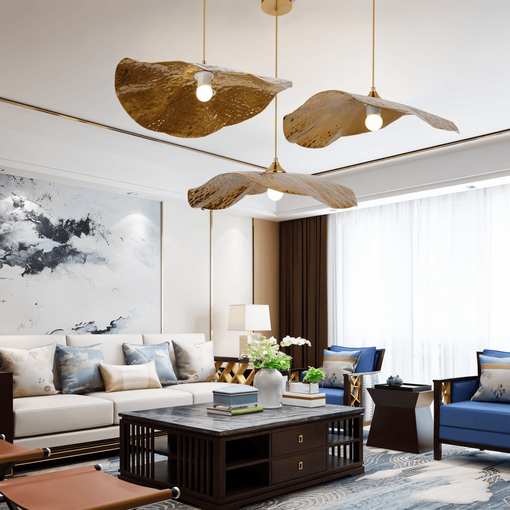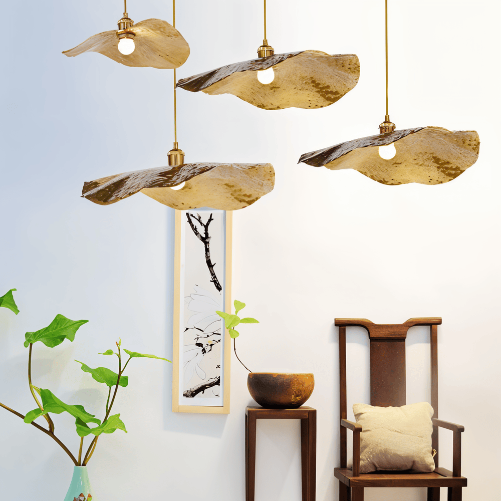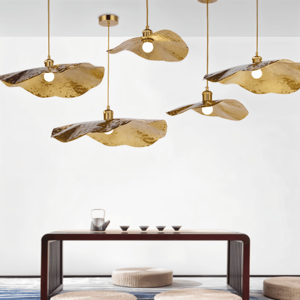 Lyxig Pendellampa med Lotusblad i Guld