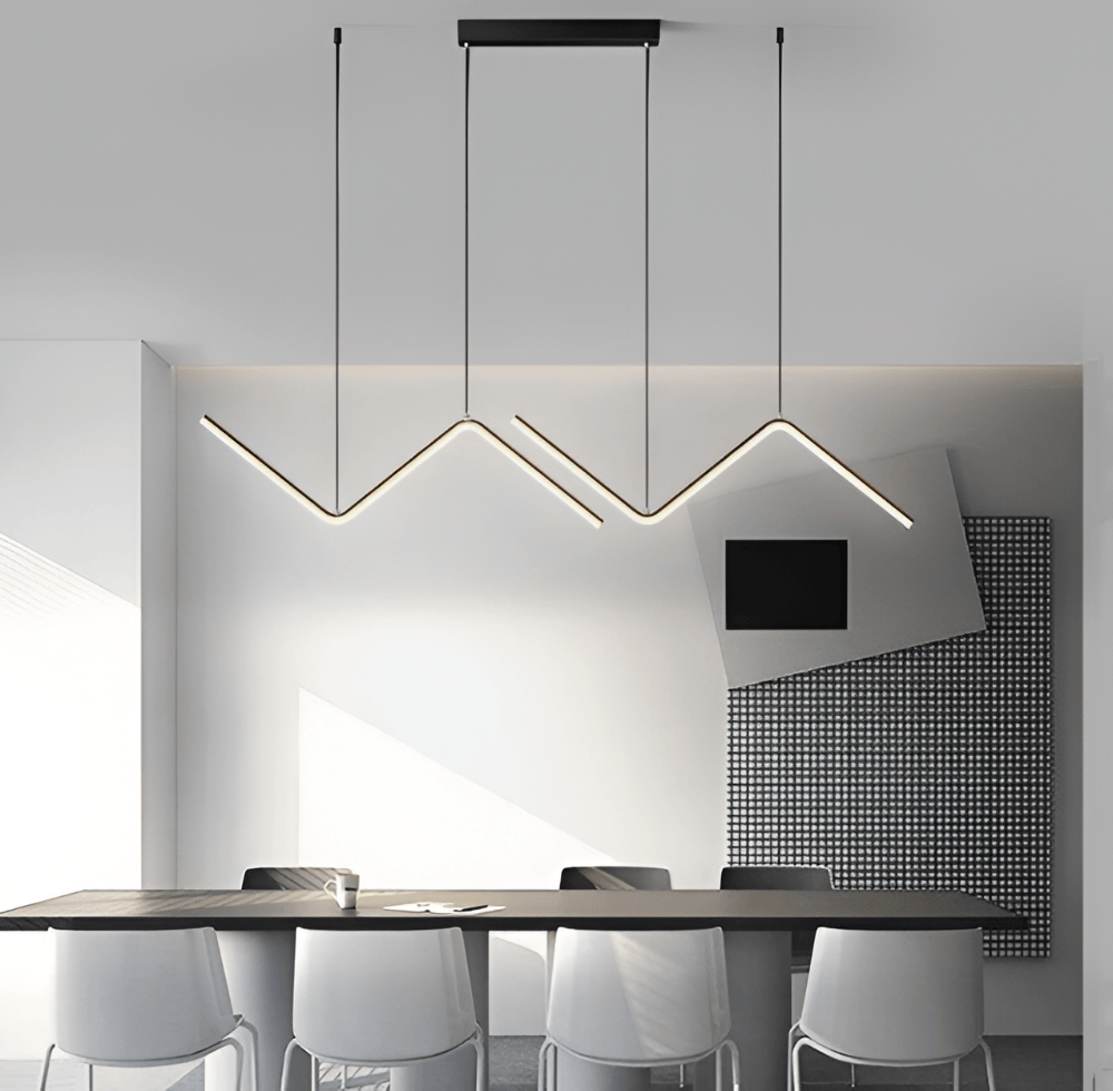 Triangeln är en av de starkaste formerna inom design, och i denna pendellampa används den för att skapa en känsla av riktning och dynamik. Den tunna, eleganta profilen ger ett nästan tyngdlöst intryck, trots den robusta konstruktionen. Genom att kombinera skarpa vinklar med en högkvalitativ ytfinish skapas en armatur som känns både industriell och exklusiv. Det är det perfekta valet för att bryta av mot runda bord eller rektangulära rumskonstruktioner, och tillför en omedelbar känsla av modern arkitektur till ditt tak.