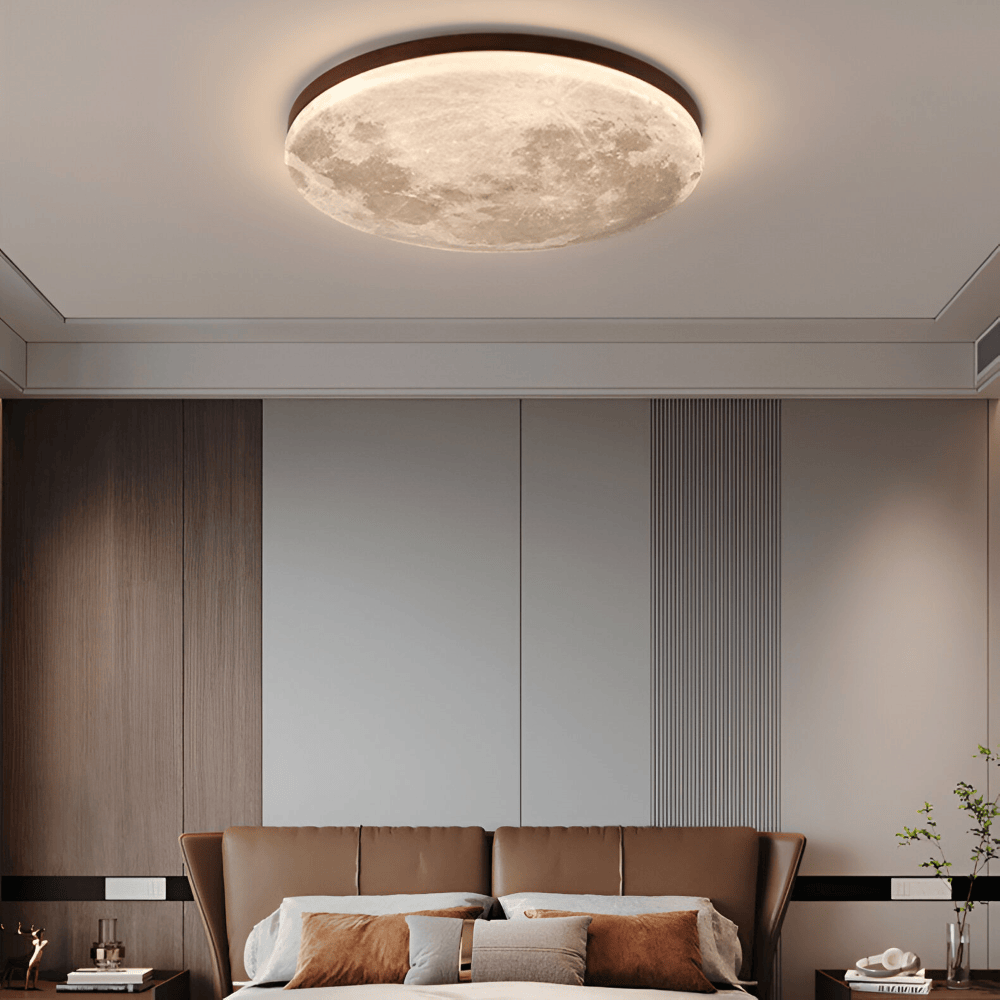 Månen har alltid varit en symbol för lugn, och med denna taklampa flyttar du in den känslan i ditt hem. Den texturerade ytan på lampan är framtagen för att efterlikna månens kratrar och hav, vilket ger ett djup och en detaljrikedom som fascinerar både barn och vuxna. När lampan tänds lyser den med ett mjukt, diffust sken som förvandlar taket till en stjärnklar himmel. Det är den perfekta belysningen för dig som vill skapa en plats för meditation, läsning eller vila.