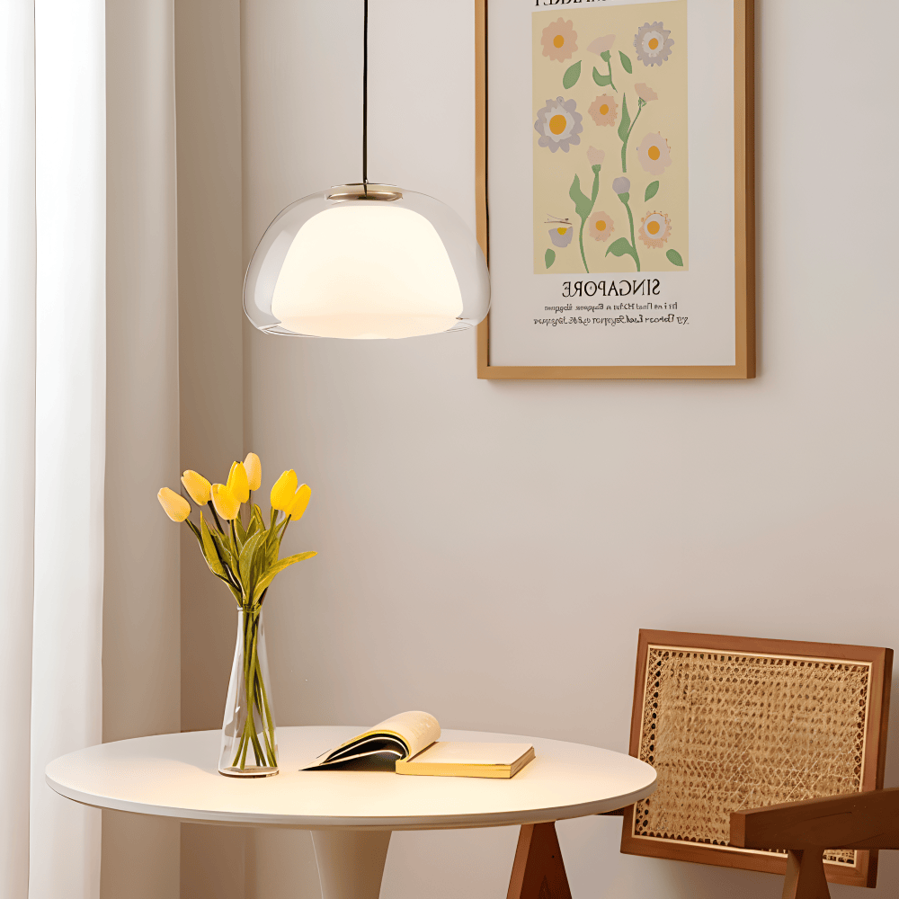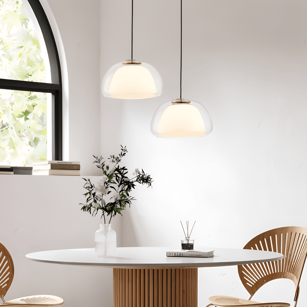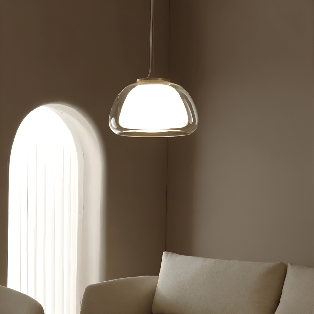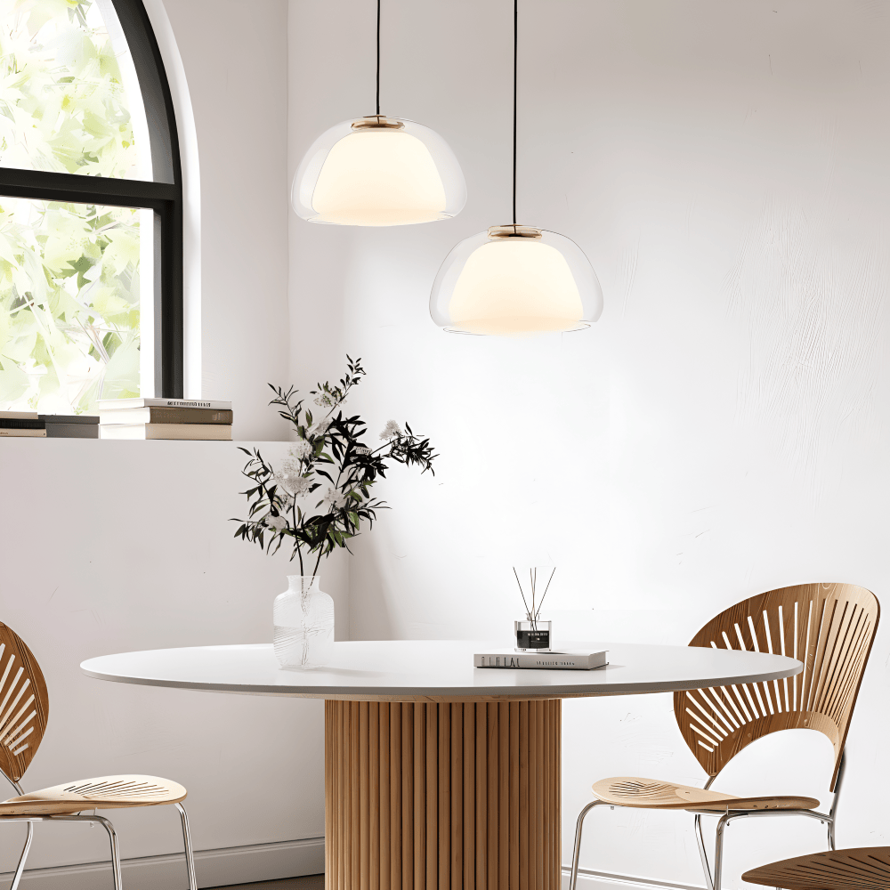 Bakom den eleganta skärmen döljer sig en design optimerad för optimal ljuskomfort. Det opala krämglaset fungerar som en naturlig diffusor, vilket innebär att ljuset sprids jämnt i alla riktningar utan att blända. Detta gör lampan idealisk för sociala ytor där man vill ha en inbjudande atmosfär. De minimalistiska upphängningsdetaljerna i metall ger en subtil kontrast som förstärker lampans moderna karaktär. Med en energieffektiv LED-ljuskälla blir denna pendellampa inte bara en estetisk vinst för ditt hem, utan också ett hållbart val för framtiden.