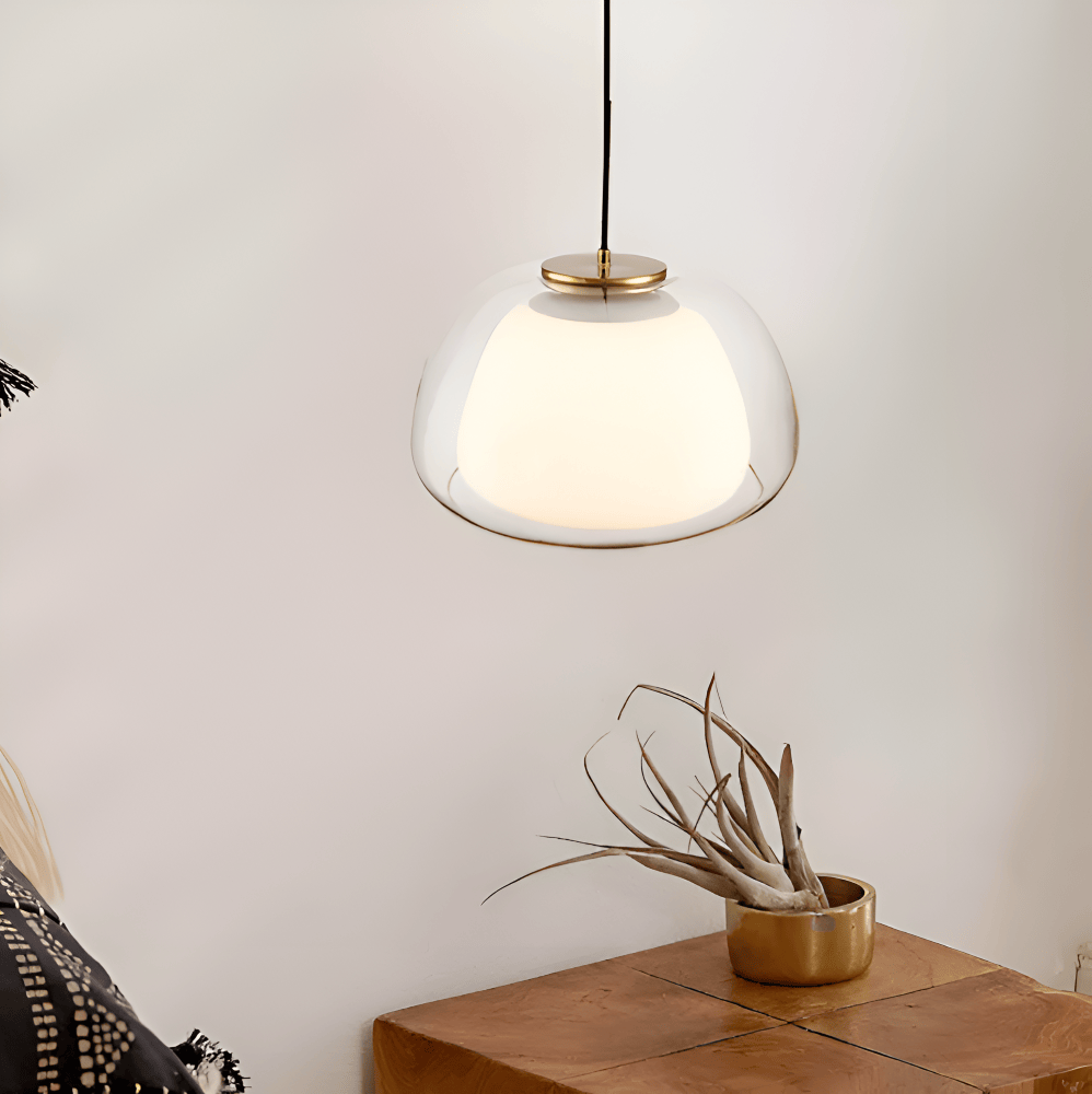 Krämfärgat glas har en unik förmåga att skapa ett visuellt lugn i en inredning. Till skillnad från klart glas, som kan kännas hårt, ger det krämvita glaset en diffus och silkeslen yta som mjukar upp rummets övriga materialval. Denna pendellampa fungerar som en diskret men stilsäker accent som kompletterar allt från ljust trä till mörkare stendetaljer. Det är det ultimata valet för dig som strävar efter en ”Japandi” eller modern skandinavisk stil där varje objekt ska bidra till en harmonisk helhet.