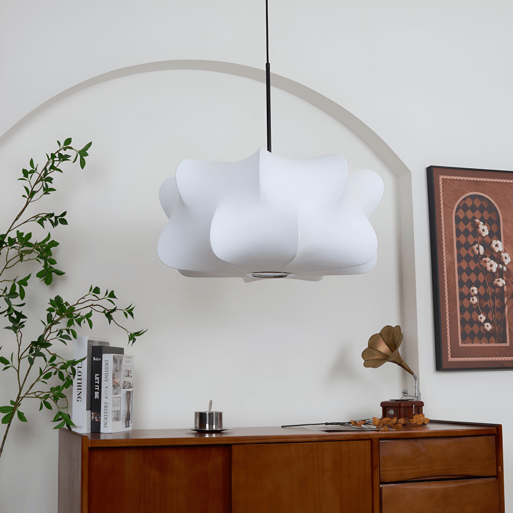 Ljuset från en Wabi Sabi-lampa är designat för att vara mjukt och omslutande. Genom att dölja ljuskällan i den skulpturala skärmen skapas en atmosfär fri från skarpa skuggor och bländning. Det gör den idealisk för sovrummet, läshörnan eller över matbordet där samtalet står i centrum. Den lätta konstruktionen gör att den hänger med en naturlig elegans, och dess jordnära färgtoner – från off-white till varm sand – smälter sömlöst in i en inredning baserad på naturmaterial som trä, sten och linne.