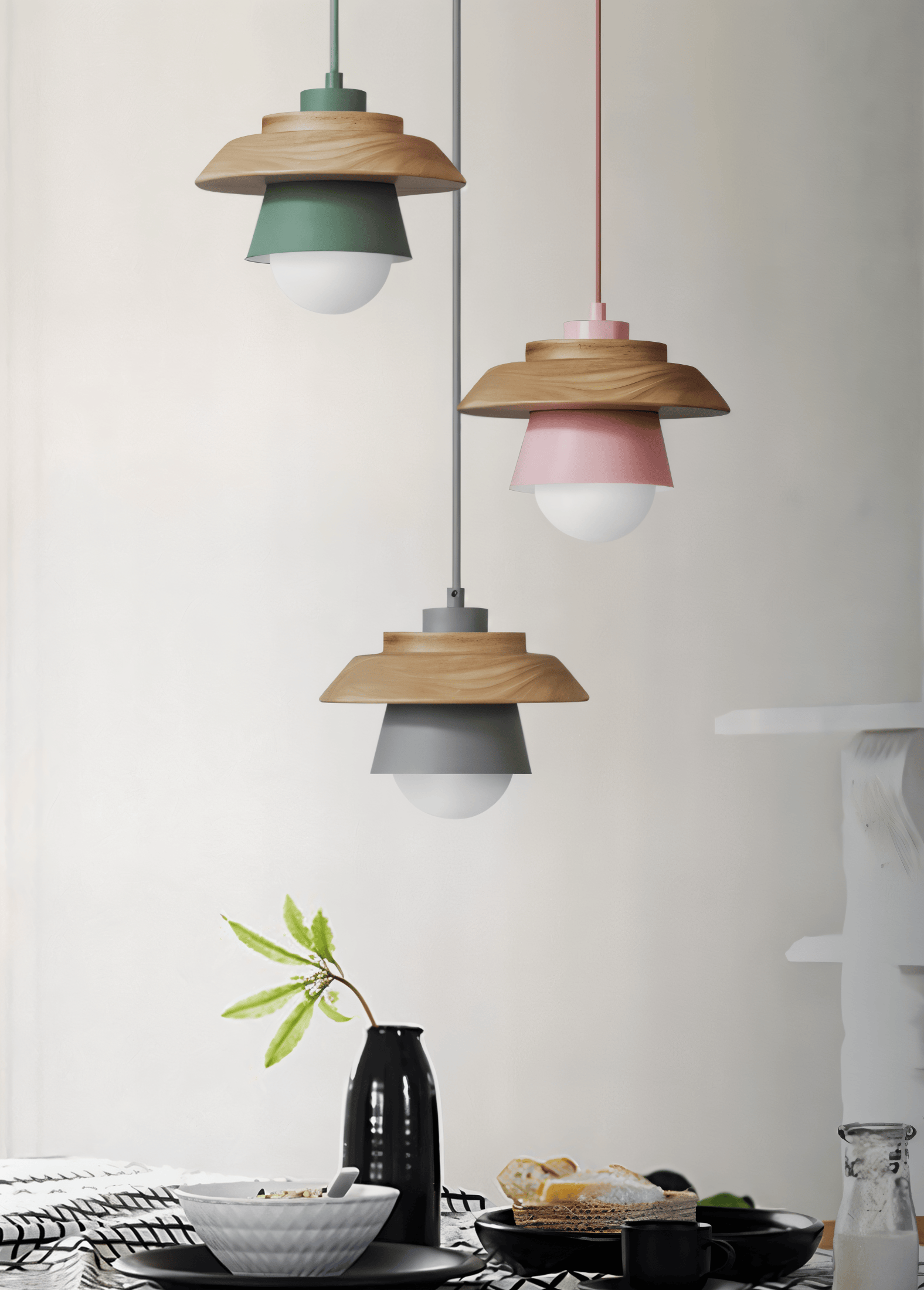1x Nordiskt trä & metall Macaron LED Hänglampa