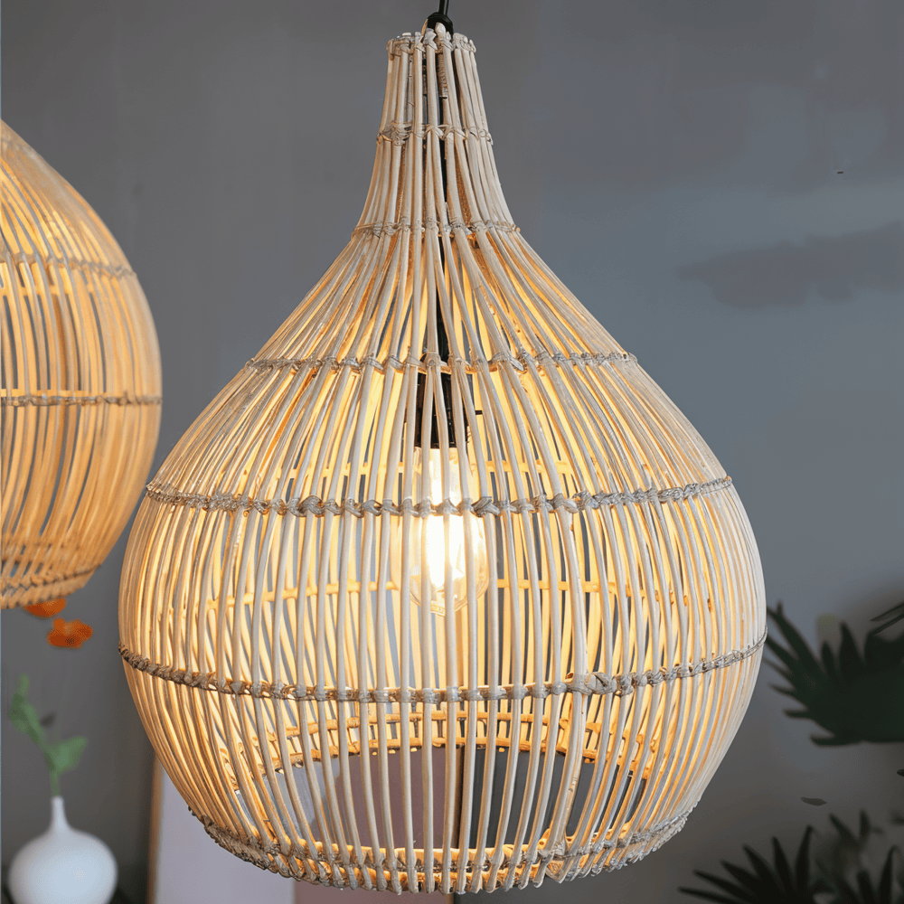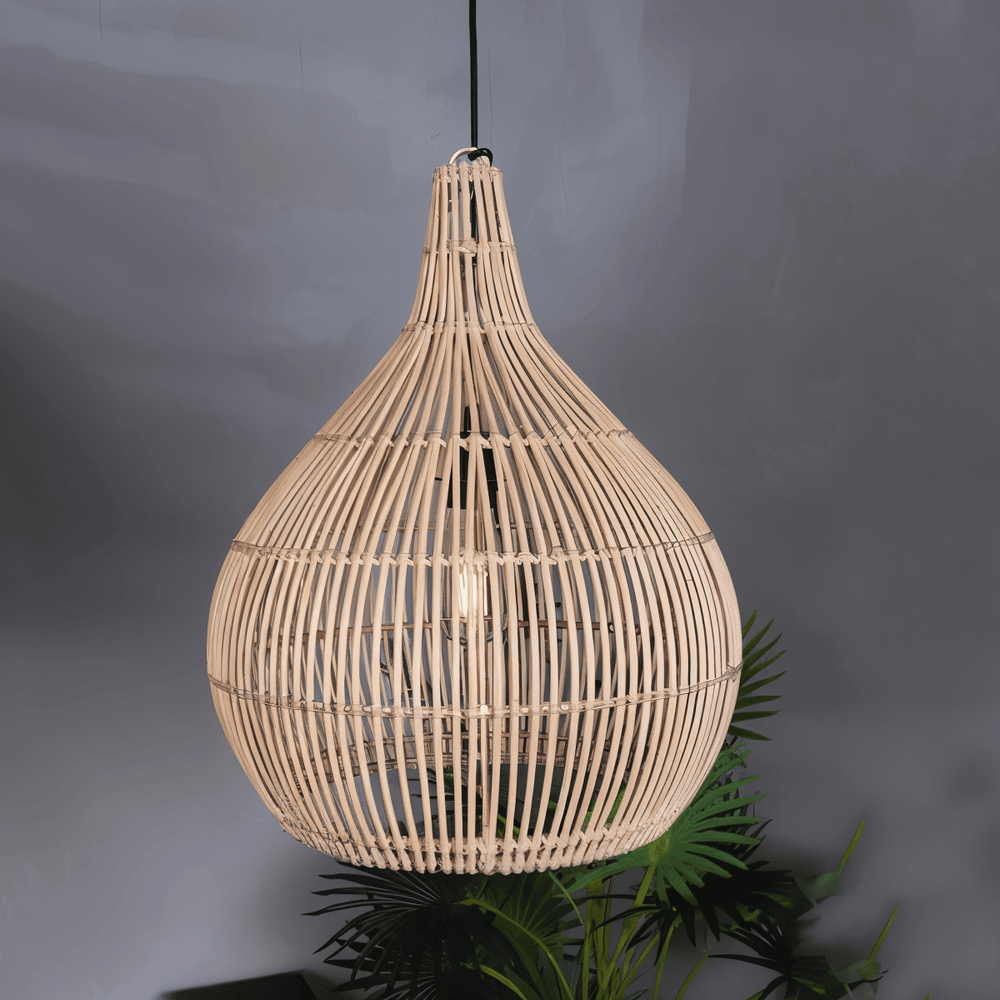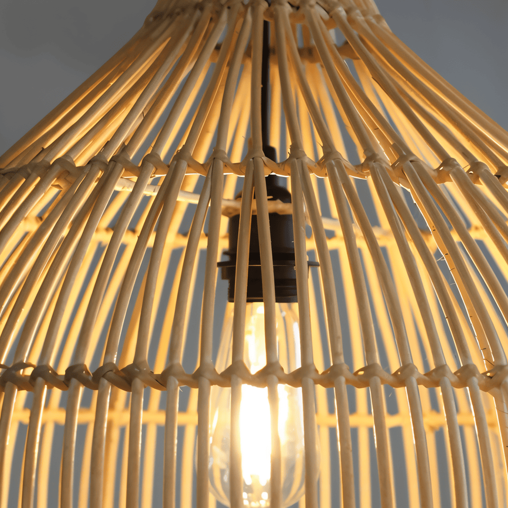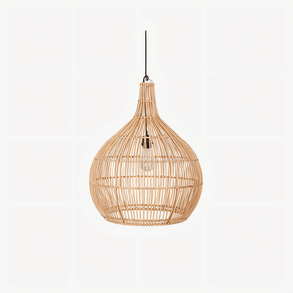 Det som gör denna pendellampa speciell är den ovanliga kombinationen av rottingens mjuka, organiska känsla och det strikta geometriska mönstret. Varje tråd av rottingen är noggrant placerad för att skapa en symmetri som känns både balanserad och arkitektonisk. Detta gör att lampan fungerar som en sofistikerad inredningsdetalj som drar blicken till sig även i dagsljus. Tack vare rottingens naturliga styrka är detta en robust armatur som behåller sin form och färg över tid, vilket gör den till ett miljövänligt val för det medvetna hemmet.