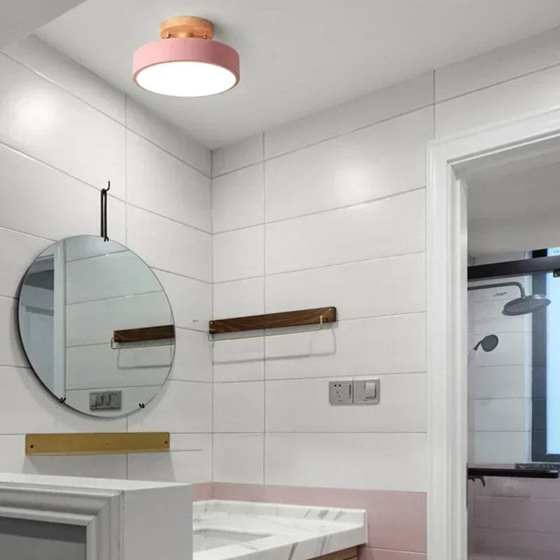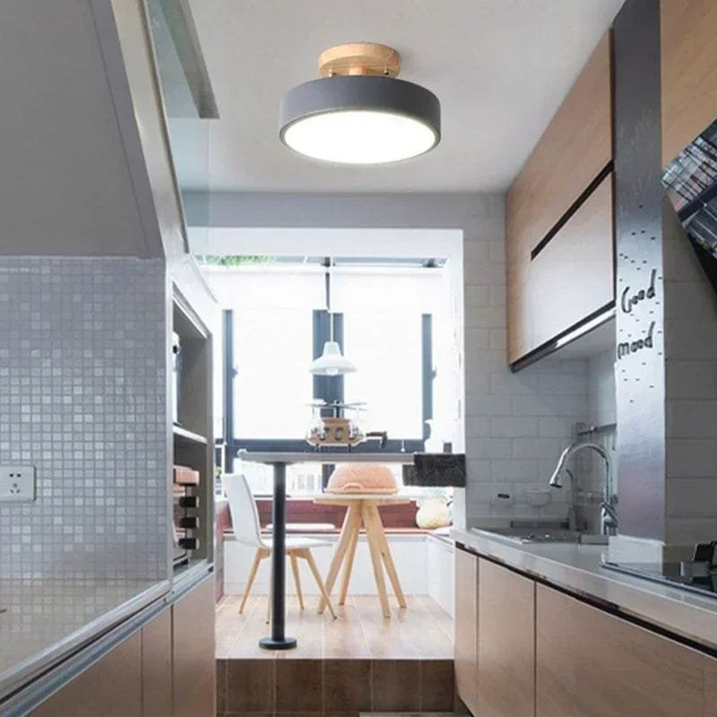 Denna nordiska taklampa för hallen kombinerar modern minimalism med mjuk, behaglig belysning. Med sin runda form, träram i naturton och flera stilrena färgalternativ – grå, grön, rosa och vit – passar den perfekt i skandinaviska interiörer. Lampans rena design sprider ett jämnt ljus som förbättrar både funktion och atmosfär i hallen, köket eller mindre rum. Den kompakta konstruktionen gör den idealisk för låga takhöjder och trånga ytor där både stil och ljusstyrka behövs.