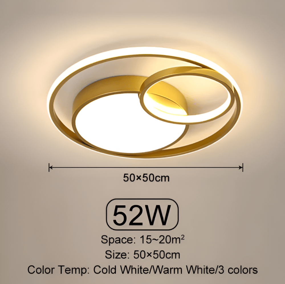 Tack vare de tre separata ljuskällorna sprider TriCircula ljuset mer effektivt än en traditionell taklampa. Varje ring är försedd med en högkvalitativ diffusor som sprider LED-ljuset jämnt 360 grader runt armaturen, vilket skapar en aura av ljus utan bländning. Detta gör den särskilt lämplig för större rum där man vill uppnå en jämn allmänbelysning med en lyxig känsla. Med sin hållbara konstruktion och framtidssäkrade LED-modul är TriCircula en långsiktig investering i både stil och välmående för ditt hem.